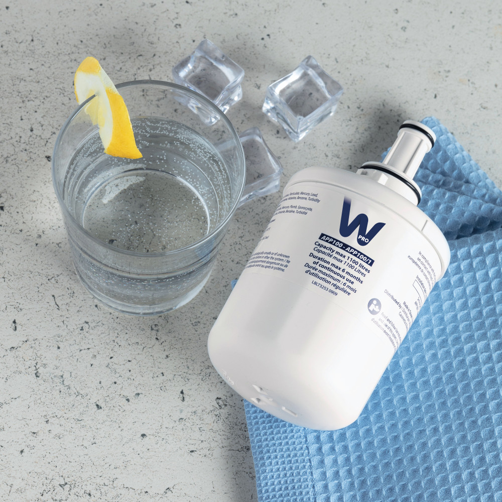 Universeel waterfilter die geschikt is voor Samsung en Maytag Side-by-Side Amerikaanse koelkasten. Het waterfilter filtert nagenoeg alle onzuiverheden als metalen, roest, zand en ander vuil en geeft water en ijsblokjes een zuivere en pure smaak, waardoor dit langer bewaard kan worden. De leidingen in de koelkast blijven zo schoon, waardoor de kans op storingen of verstoppingen afneemt. Vervangen om de 6 maanden met een capaciteit van max. 1100 liter. De toepasbaarheid vindt u op www.wpro-whirlpool.com.